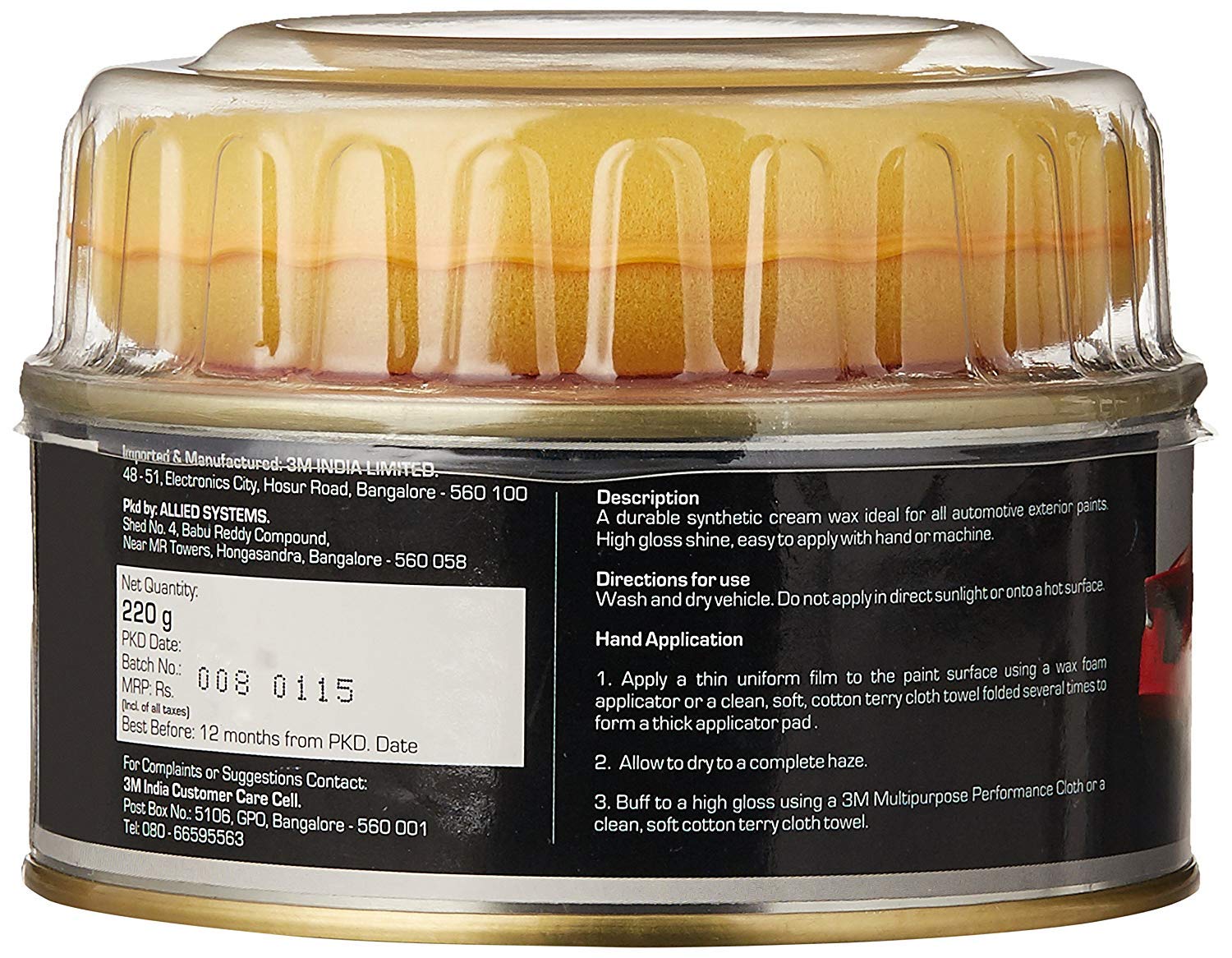 The wax cream from 3M can be applied to all car bodies to maintain the glossiness. It gives a long-lasting shine to the car body by keeping the dust at bay and protection against atmospheric oxidation. The wax gives a streak-free shine to your car, thus renewing the look of the car.