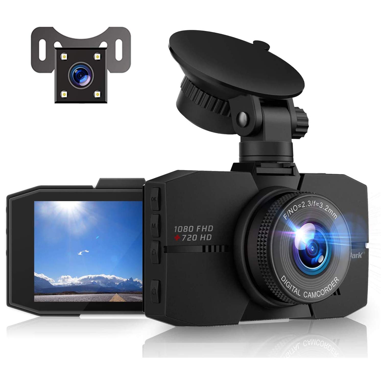 Campark is a Dual Dash Cam featuring 1080P FHD front & 720P rear cameras, which can display & record continuously. It can record in 1/3/5 minutes clips & will automatically overwrite the earliest footage when the micro SD card is full. The dash camera also comes with a special WDR system that automatically adjusts the video brightness to achieve a balance in low light environments.