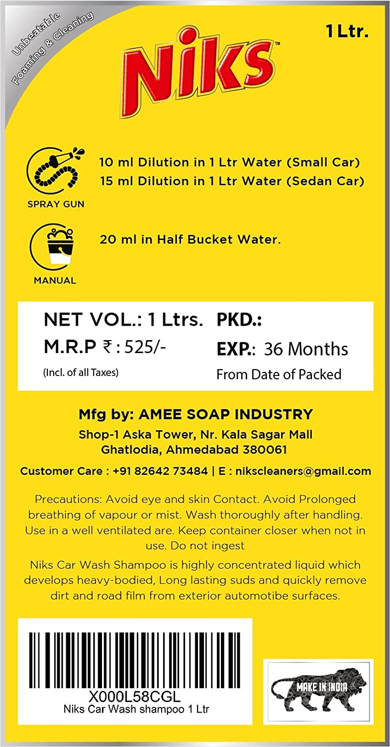 Niks Car shampoo is Made with Specialized Materials from Switzerland for extra shining and cleaning with heavy foam. This shampoo removes dirt quickly and thoroughly and there is no need for repeated scrubbing to remove grime. Just add 10 to 15 ml in 5 Ltrs of water and leave it on for a few minutes and rinse. Tada! it instantly gives your car a new look. Best for people looking for an affordable car wash shampoo.