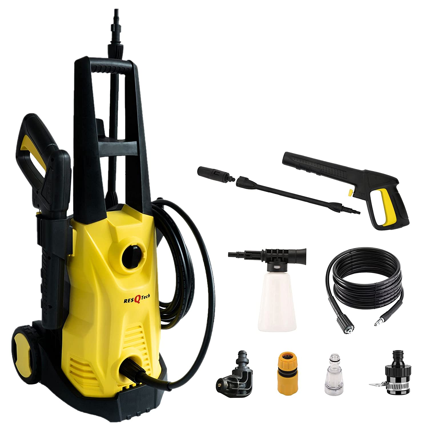 ResQTech high-pressure washer comes with a really good motor that delivers an insane amount of pressure to wash off any stain or dirt even from concrete and is powerful enough to cut corrugated cardboard into two halves. It comes with a 5m high-pressure hose and 5m power cord, garden hose adaptor, and TSS (total stop system) trigger that automatically shuts off the pump when the trigger is not engaged. This product comes with a 2-year warranty and the friendliest customer care team to address your queries and send a replacement to incase of repairs.